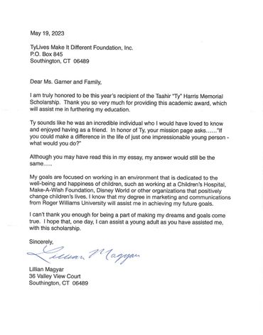 Congratulations to Lillian Magyar & Alexander Martin for this year's Make it Different Foundation and "Ty Harris Memorial Scholarship" Awards! Your future is in your command and it looks bright!